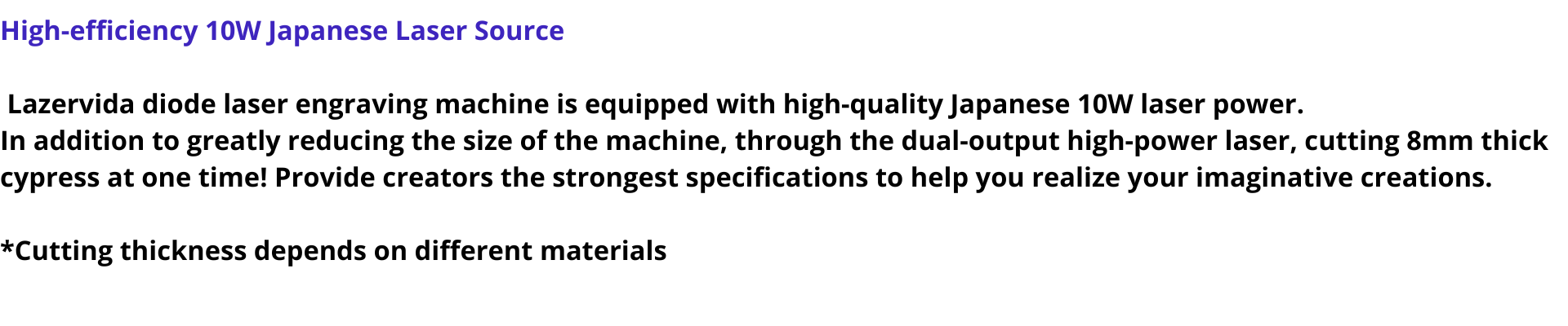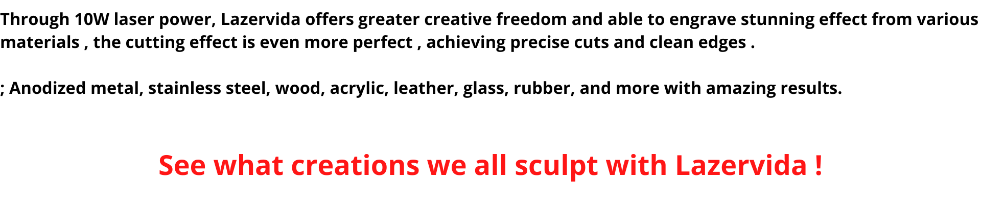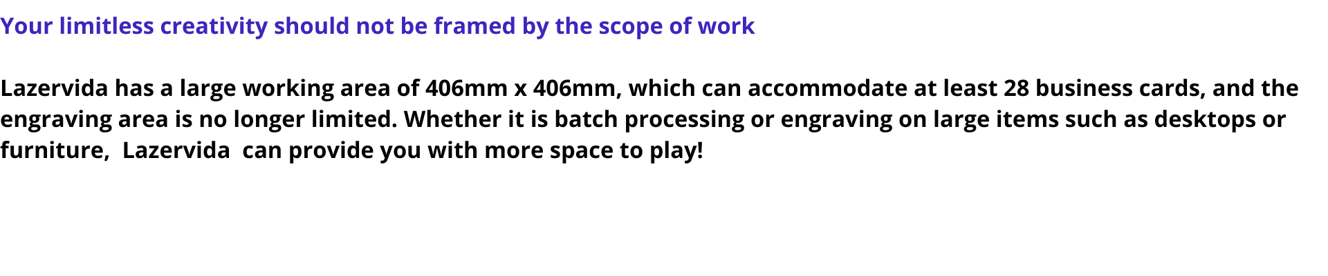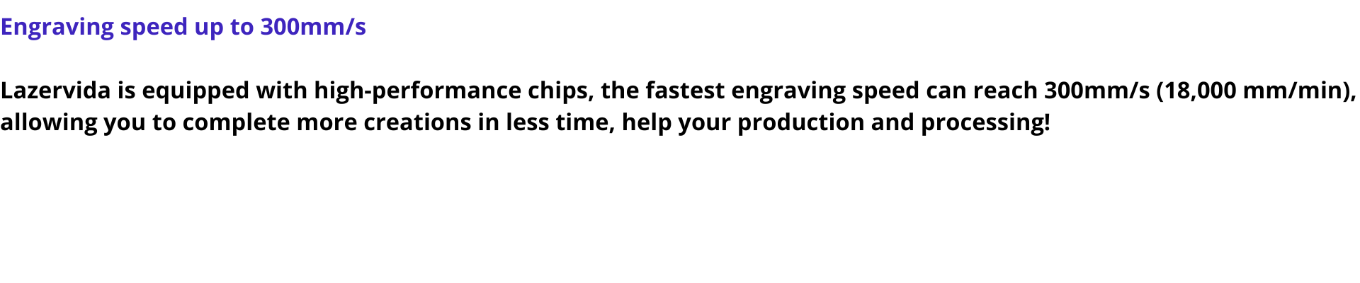 Equipped with high-effection chips, Lazervida provides maximum engraving speed up to 300mm/s ( 18,000 mm/min ).
