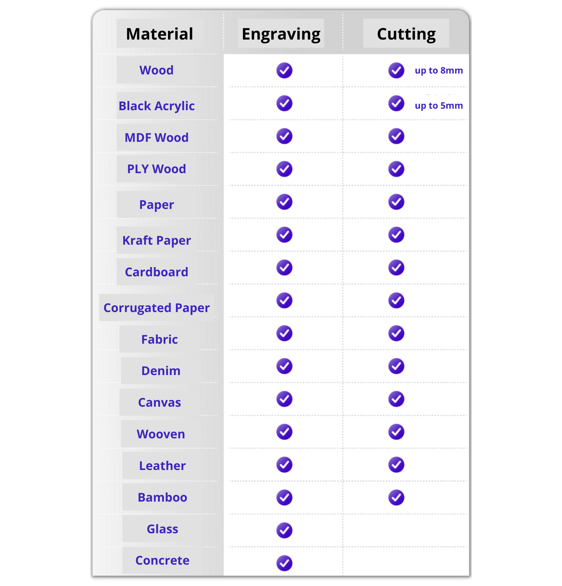 1000 DPI high-resolution Ultra-Sharp™ tech and 0.08 x 0.08mm laser spot helps achieve amazing work.
