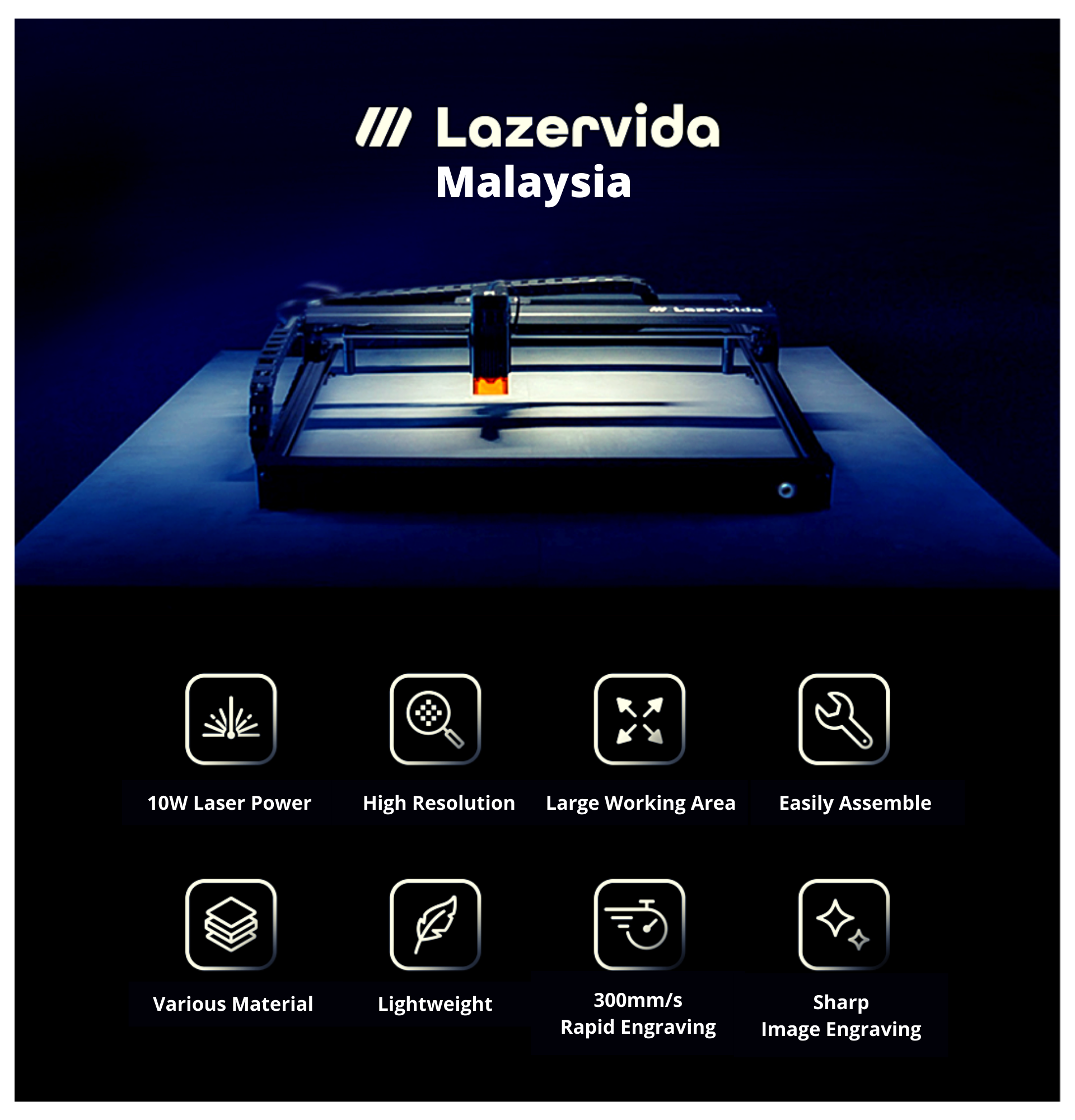 Equipped with high-effection chips, Lazervida provides maximum engraving speed up to 300mm/s ( 18,000 mm/min ).