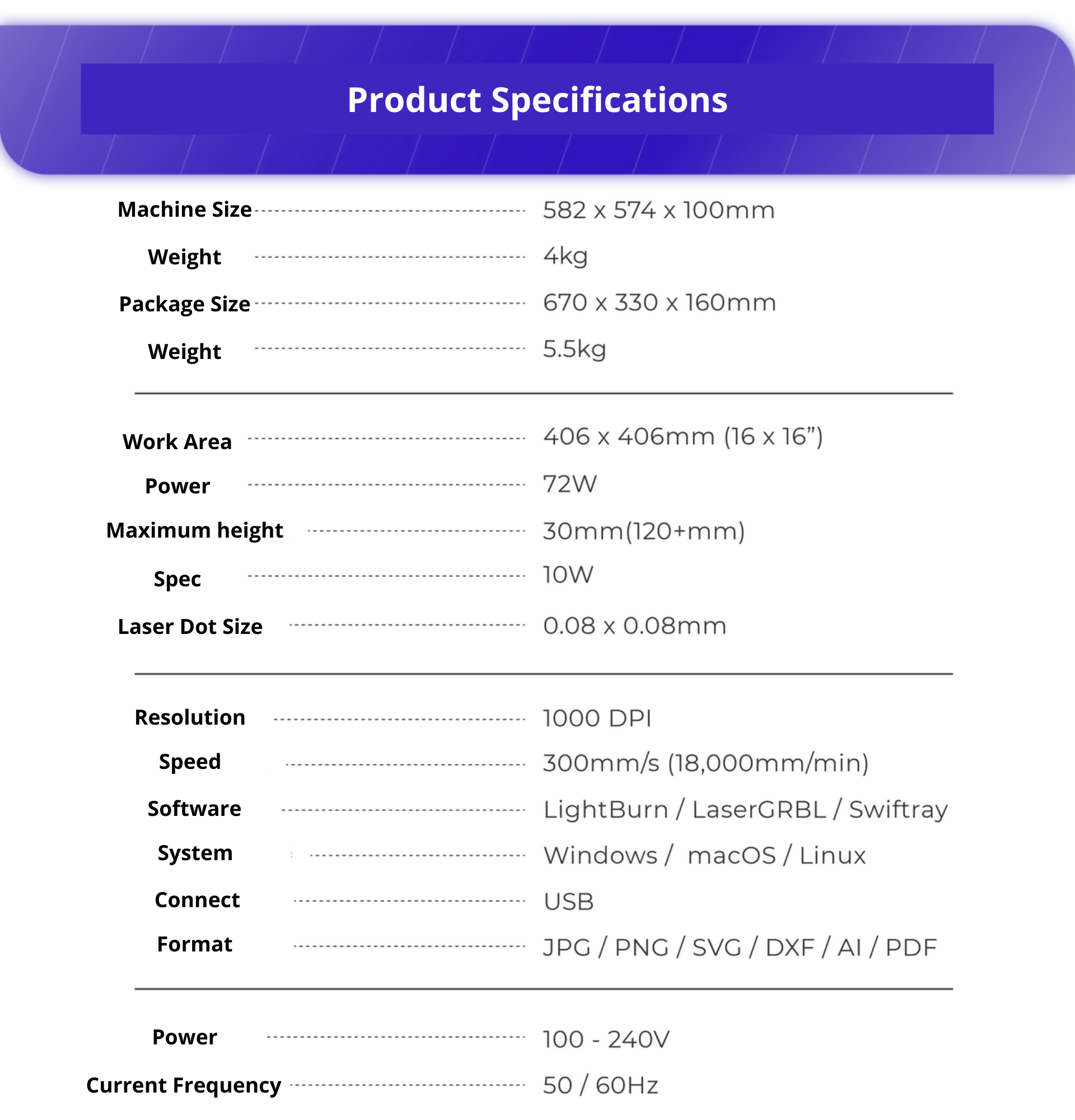 1000 DPI high-resolution Ultra-Sharp™ tech and 0.08 x 0.08mm laser spot helps achieve amazing work.
